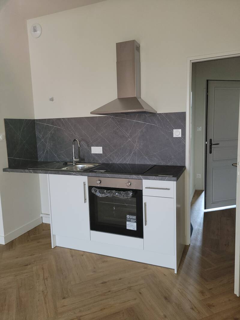 Le logement comprend une entrée, une piéce de vie ouverte sur une cuisine aménagée et équipée (four, plaque et hotte), une salle d'eau/WC et une chambre.
